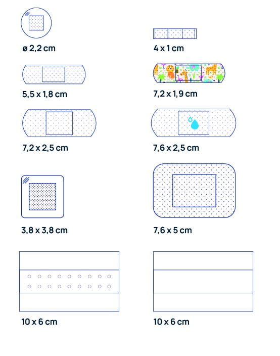 - różnorodne kształty plastrów w zestawie umożliwiają zachowanie kompleksowej ochrony powierzchownych skaleczeń, otarć, przecięć na skórze