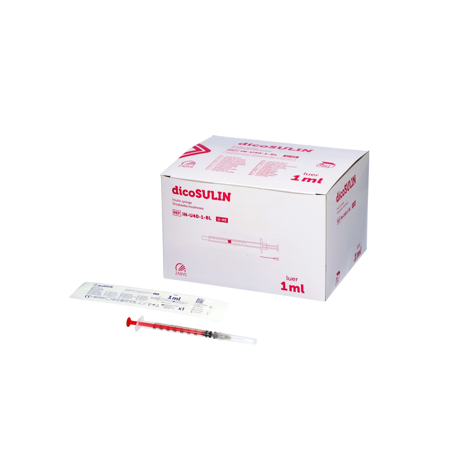 Strzykawka insulinowa z igłą wraz ze stożkiem Luer do podawania między innymi insuliny o stężeniu 100 j.m./1ml.