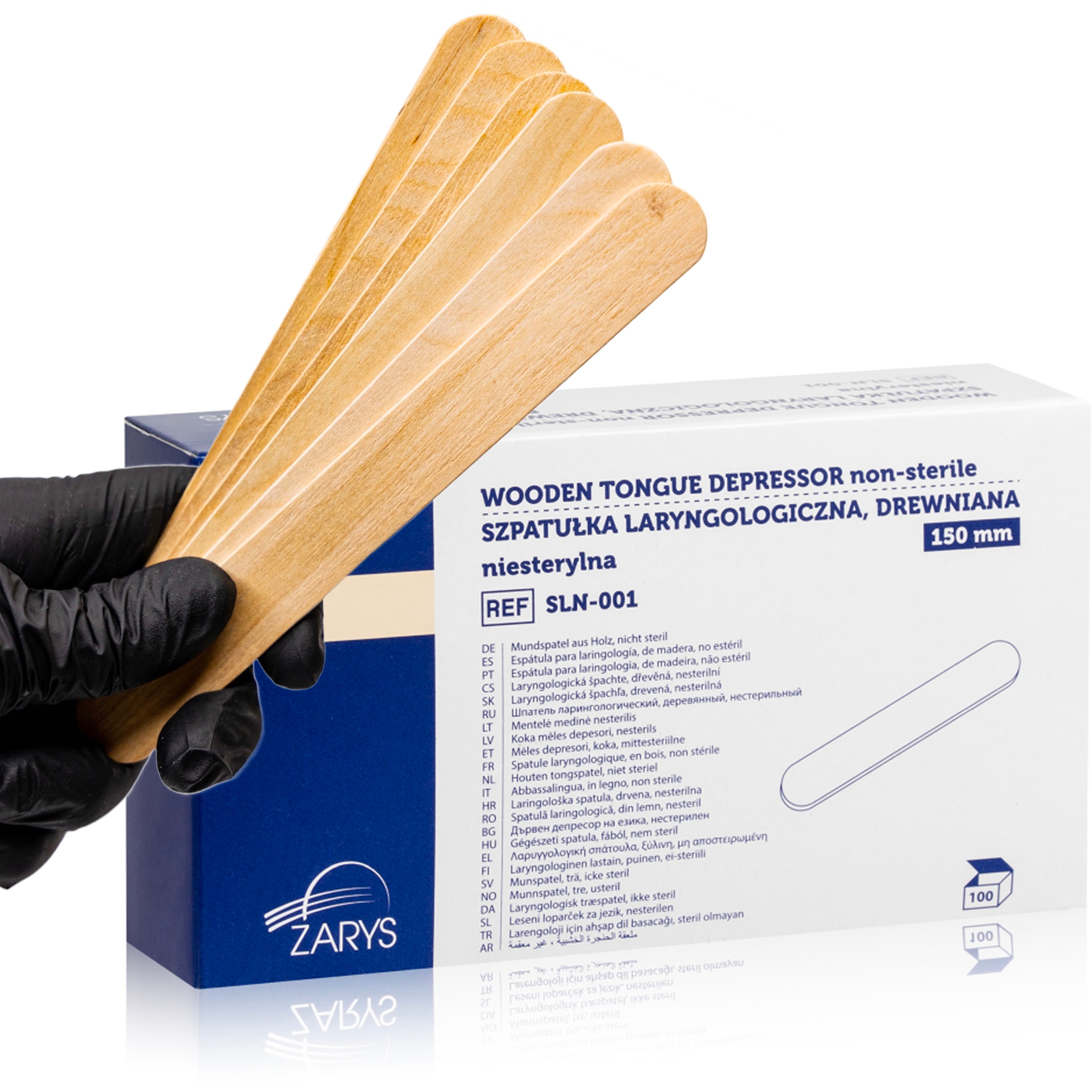 Szpatułka laryngologiczna drewniana niesterylna jest narzędziem medycznym używanym przez specjalistów laryngologów do badania i leczenia chorób gardła, nosa i uszu. Szpatułka umożliwia precyzyjne badanie jamy ustnej, gardła, krtani i nosa pacjenta, stosowane również w gabinetach kosmetycznych w zabiegach depilacyjnych. Patyczki lekarskie drewniane przeznaczone do jednorazowego zastosowania, po wykorzystaniu należy je odpowiednio zutylizować. Szpatułki wykonane zostały z wysokiej klasy drewna brzozowego szlifowanego na gładko. Zaokrąglone brzegi w szpatułkach ułatwiają badanie jamy ustnej nie powodując podrażnień.