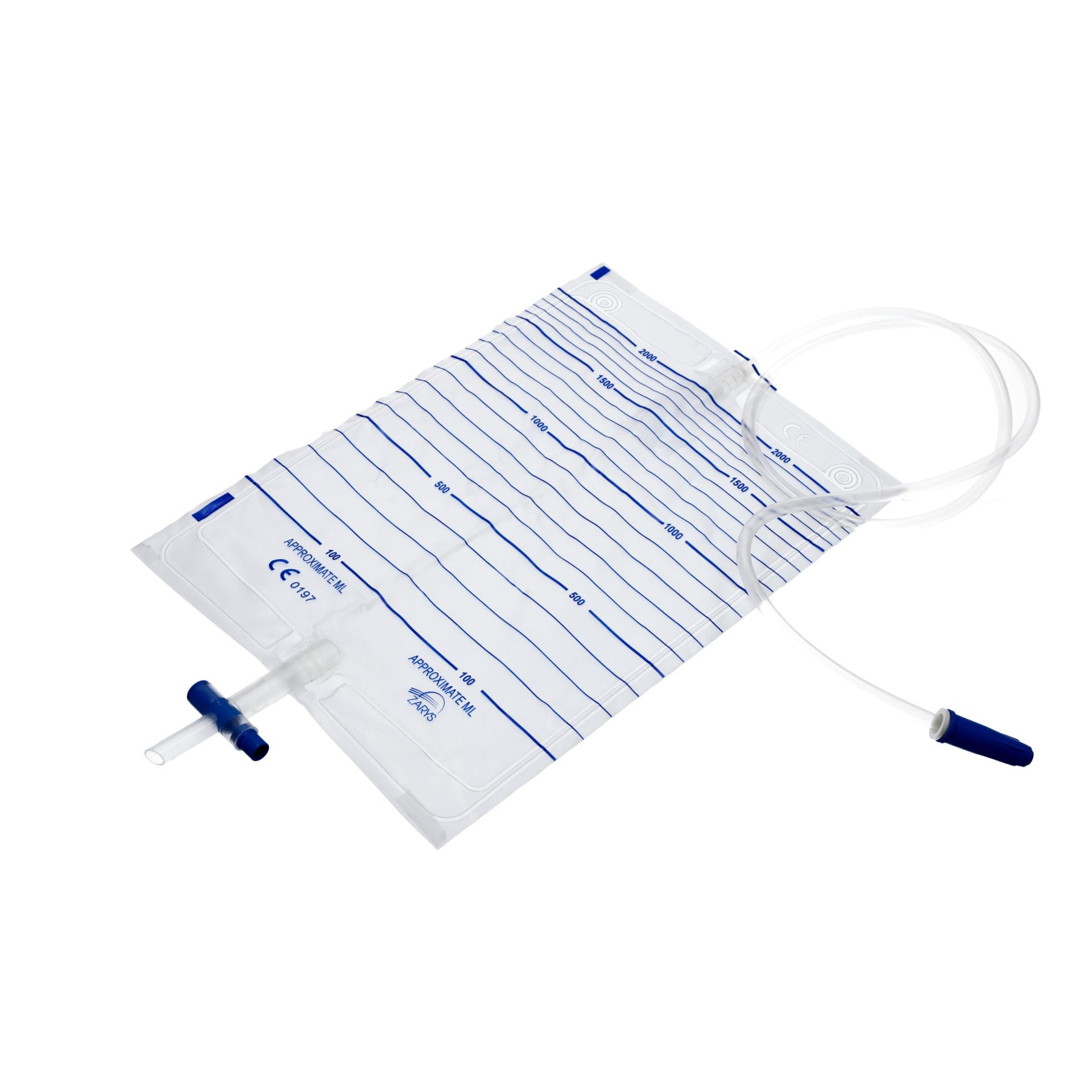 Bezlateksowy worek do zbiórki moczu o pojemności 2000ml wykonany z PCV z podwójnie zgrzewaną folią oraz skuteczną zastawką antyrefluksyjną. Wyrób z drenem wykonanym z materiału zapobiegającemu zaginaniu i skręcaniu się, przeznaczony do dobowego, pozaustrojowego zbierania moczu i innych płynów ustrojowych